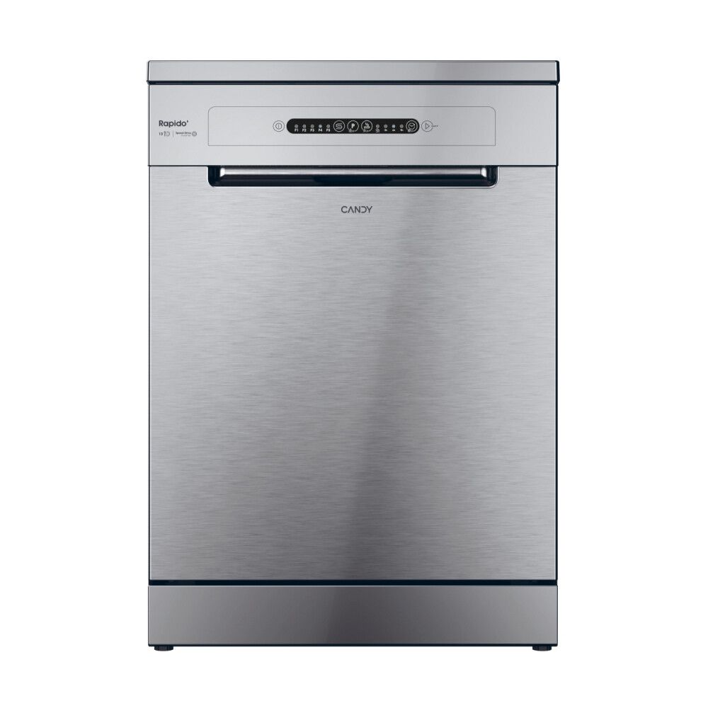 Candy CF 3E9E0X. Posizionamento dell'apparecchio: Libera installazione, Dimensione: Dimensione massima (60 cm), Colore della porta: Acciaio inox. Numero di coperti: 13 coperti, Classe emissione rumore: C, Emissione acustica: 49 dB. Classe efficienza energetica: E, Consumo di acqua per ciclo: 10,9 L, Consumo energetico per 100 cicli: 93 kWh. Larghezza: 597 mm, Profondità: 598 mm, Altezza: 850 mm. T... Mostra tutto