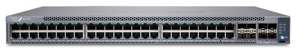 Juniper EX4100-48P. Tipo interruttore: Non gestito. Quantità di porte RJ-45: 48. Dimensioni tavola MAC: 64000 voci, Capacità di commutazione: 376 Gbit/s. Standard di rete: IEEE 802.1Q, IEEE 802.1ak, IEEE 802.1p, IEEE 802.1x, IEEE 802.3, IEEE 802.3ab, IEEE 802.3af, IEEE.... Supporto Power over Ethernet (PoE). Montaggio rack, Fattore di forma: 1U